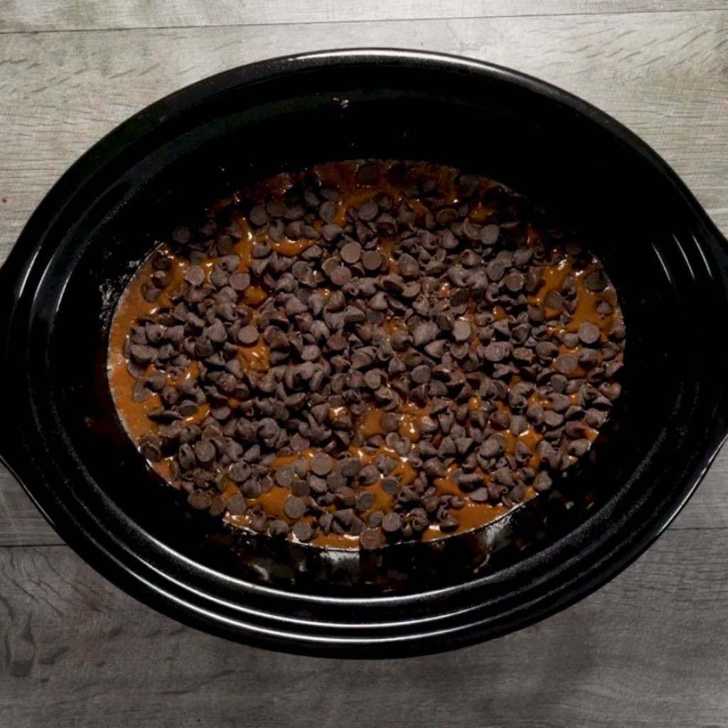 - Cover the Crock-Pot and cook on LOW for 2 hours. The chocolate will melt slowly.
