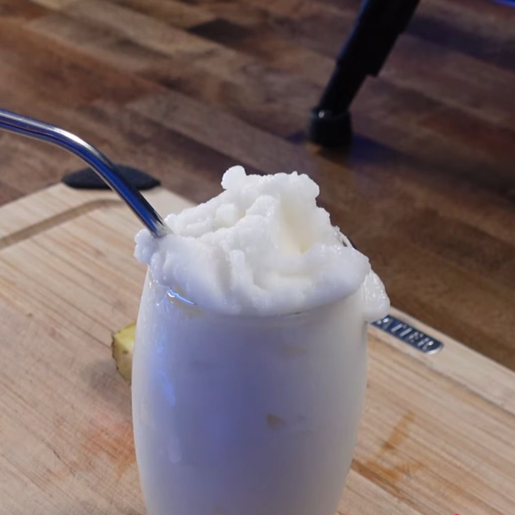 - Choose the Milkshake preset. The machine cools the coconut-pineapple mixture slowly, forming soft ice layers that turn into a creamy, slush-like texture. As it thickens, the drink takes on a smooth tropical aroma.
